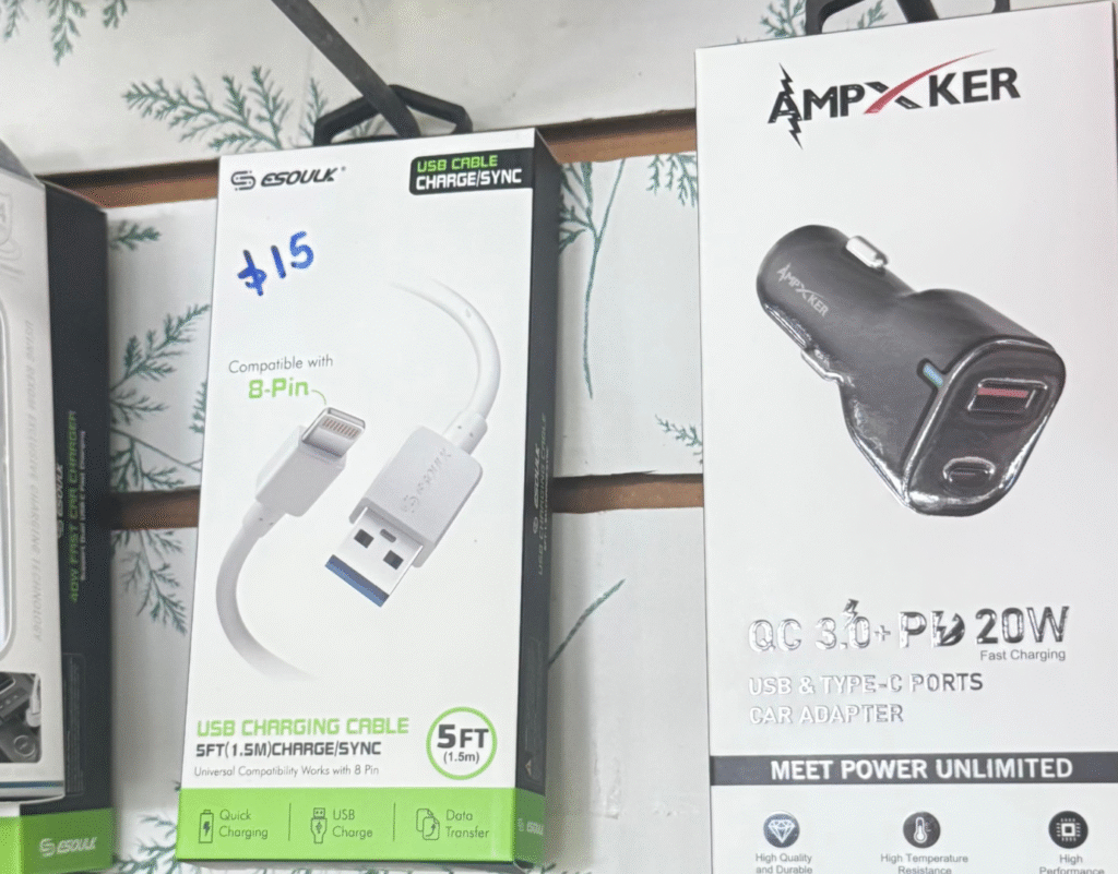 - Accesorios de teléfono: cargadores, protectores de vidrio, cases
